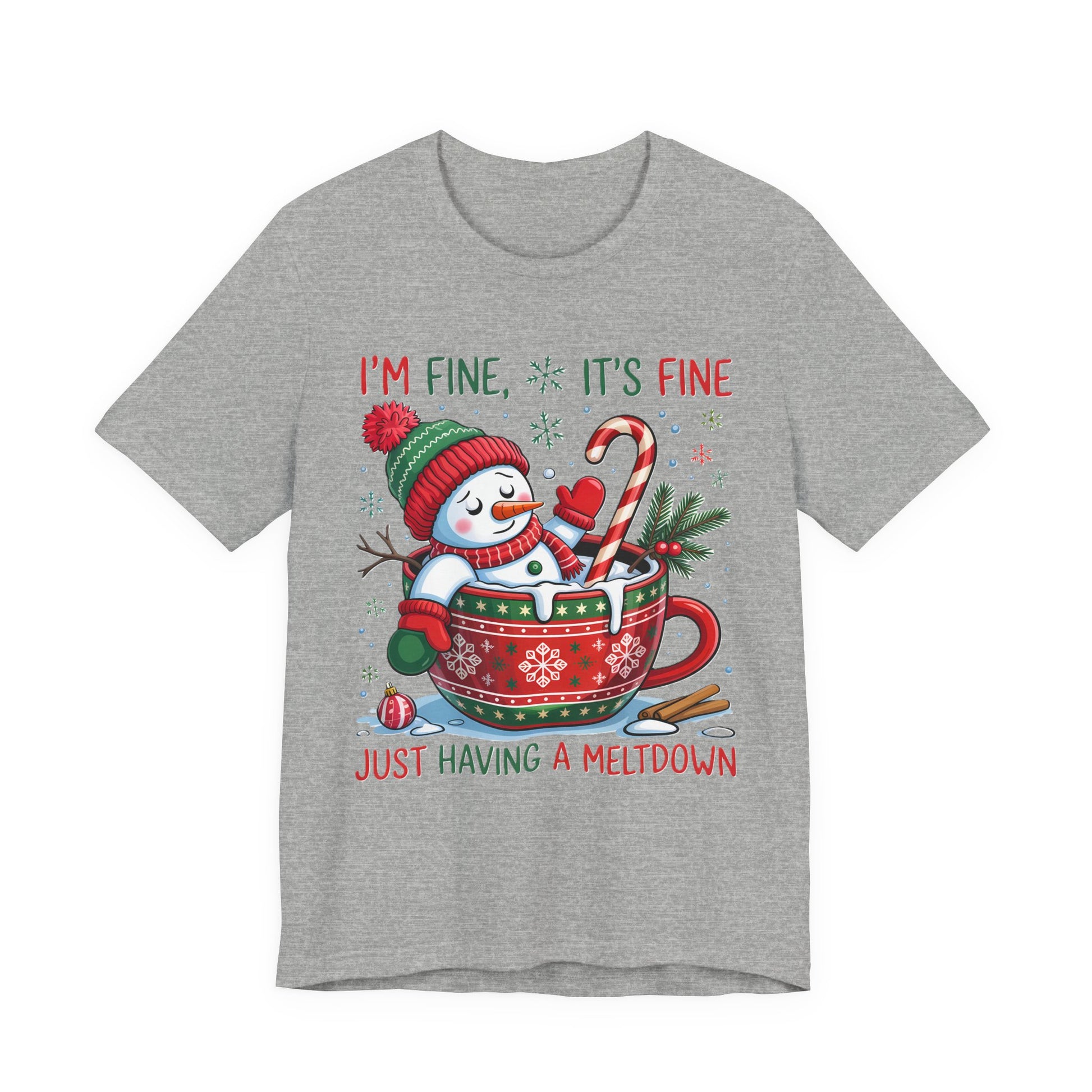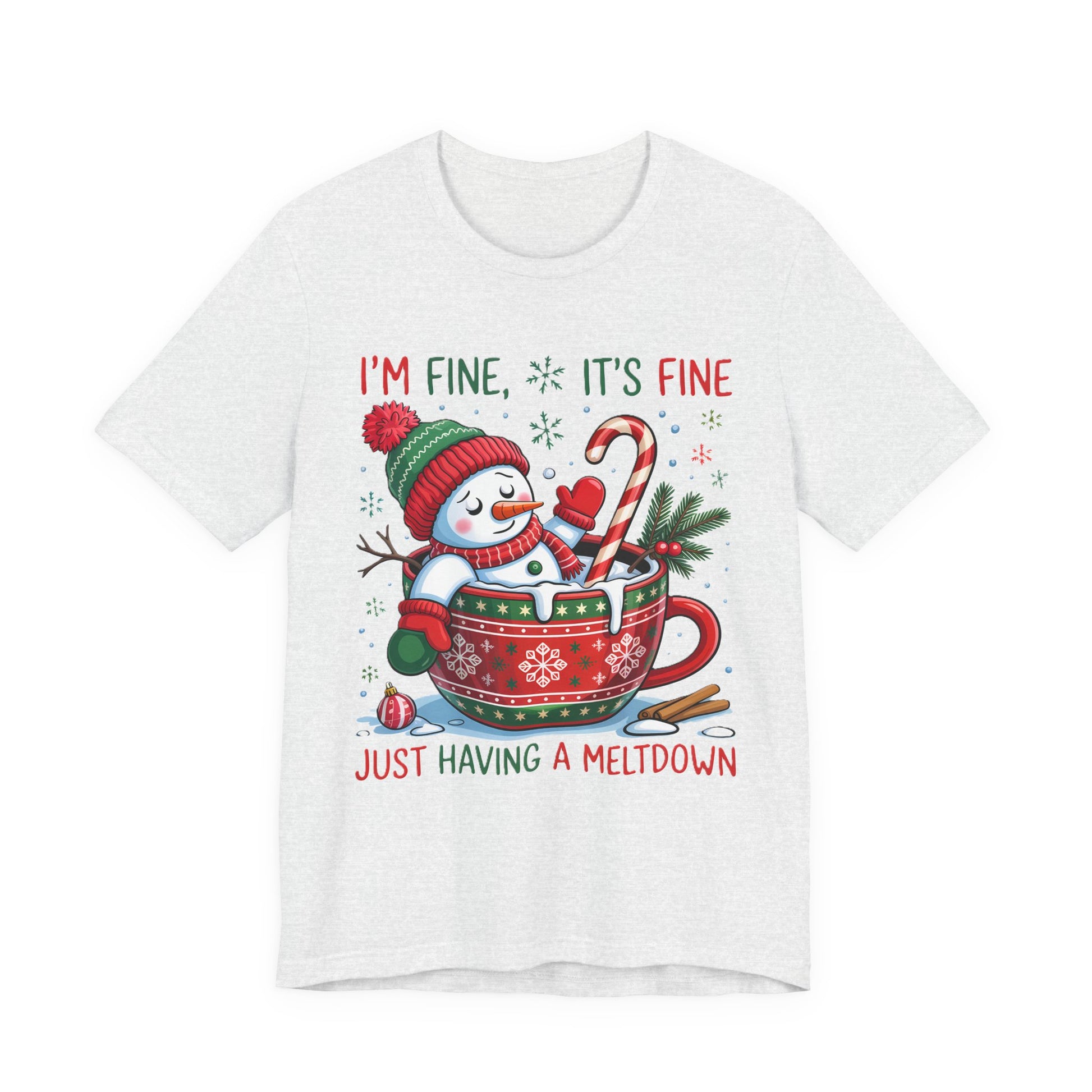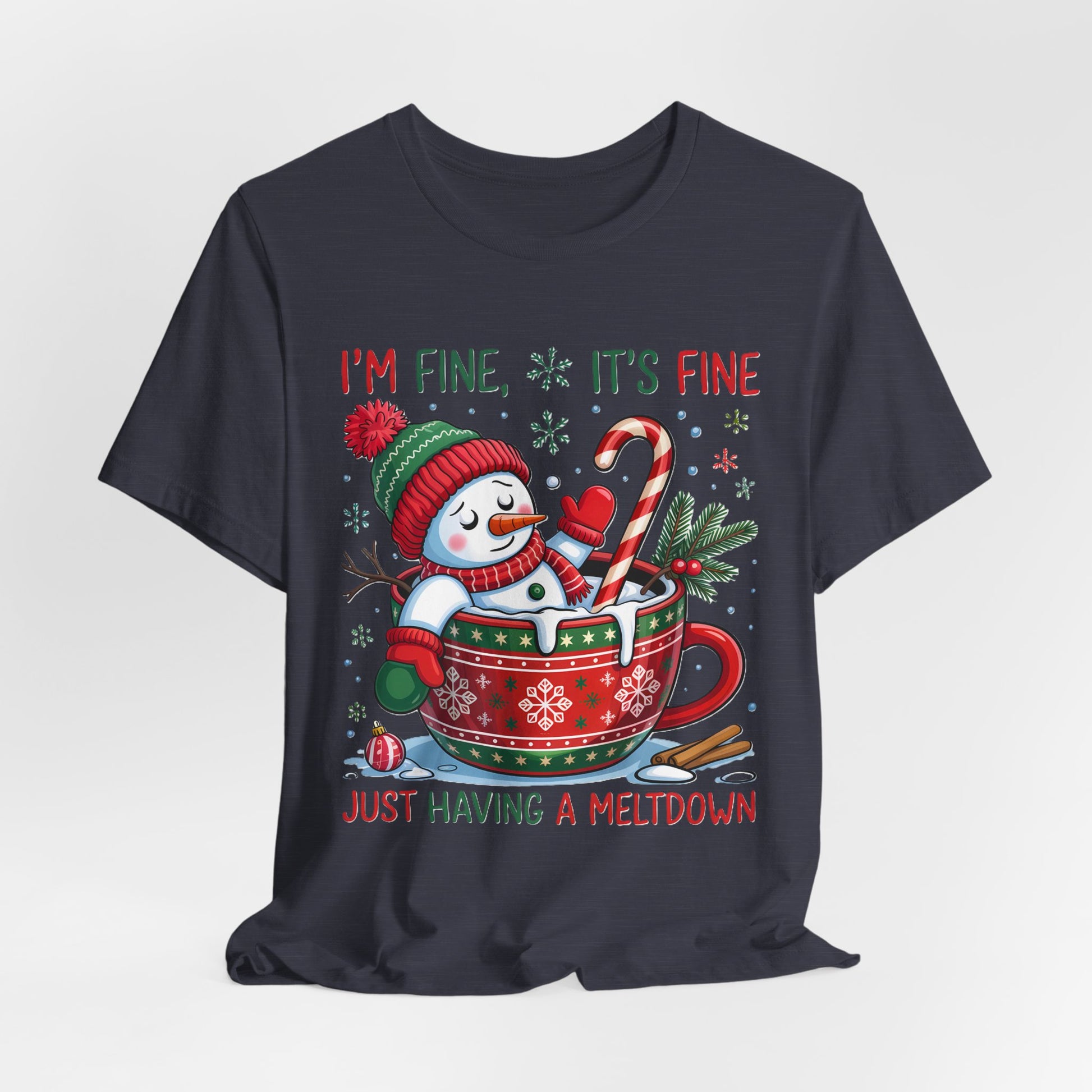 Melting Snowman Christmas Tee - "I'm Fine, It's Fine Just Having a Meltdown" Holiday T-Shirt