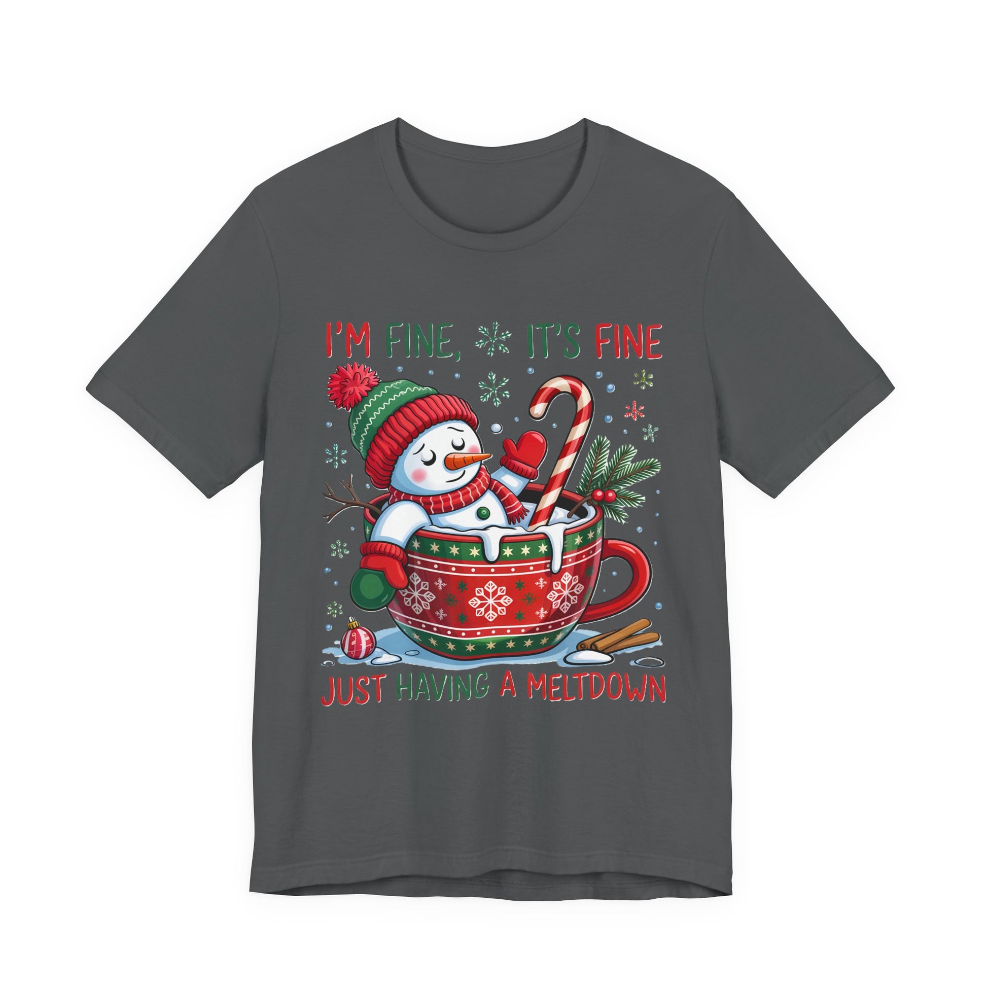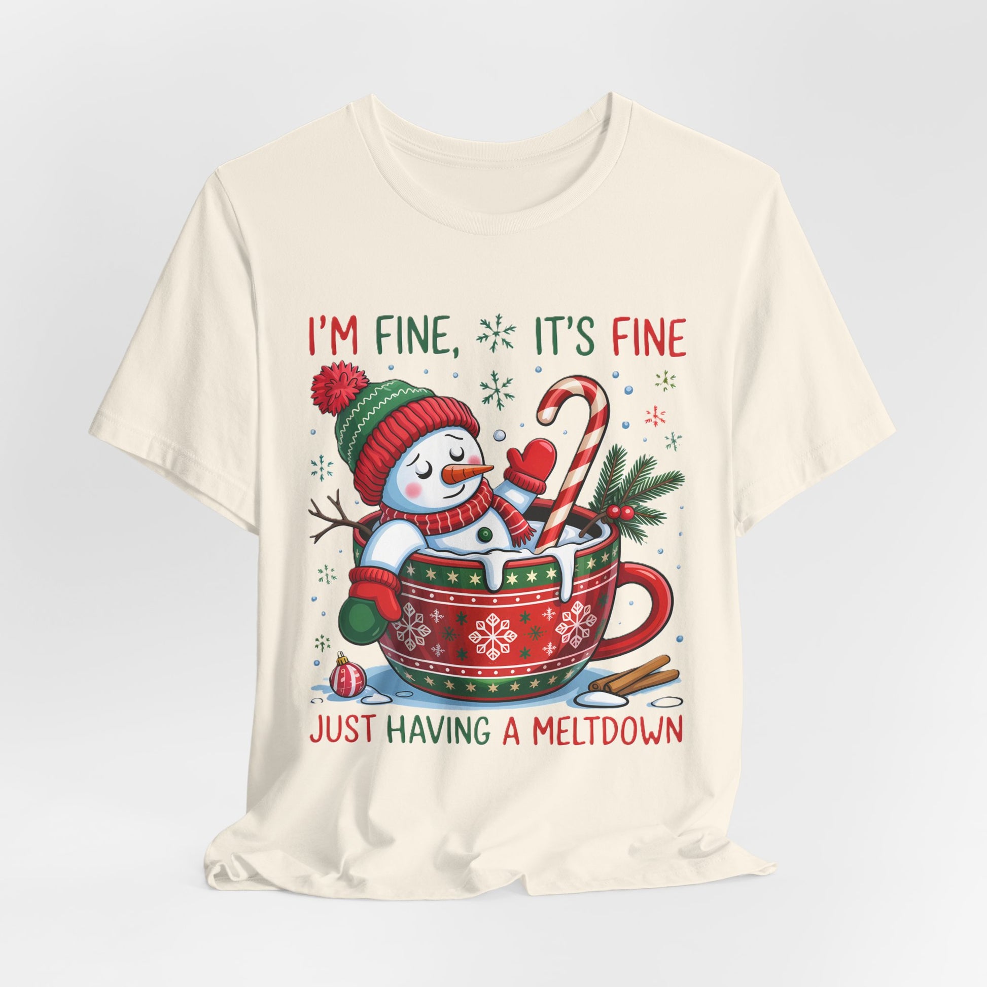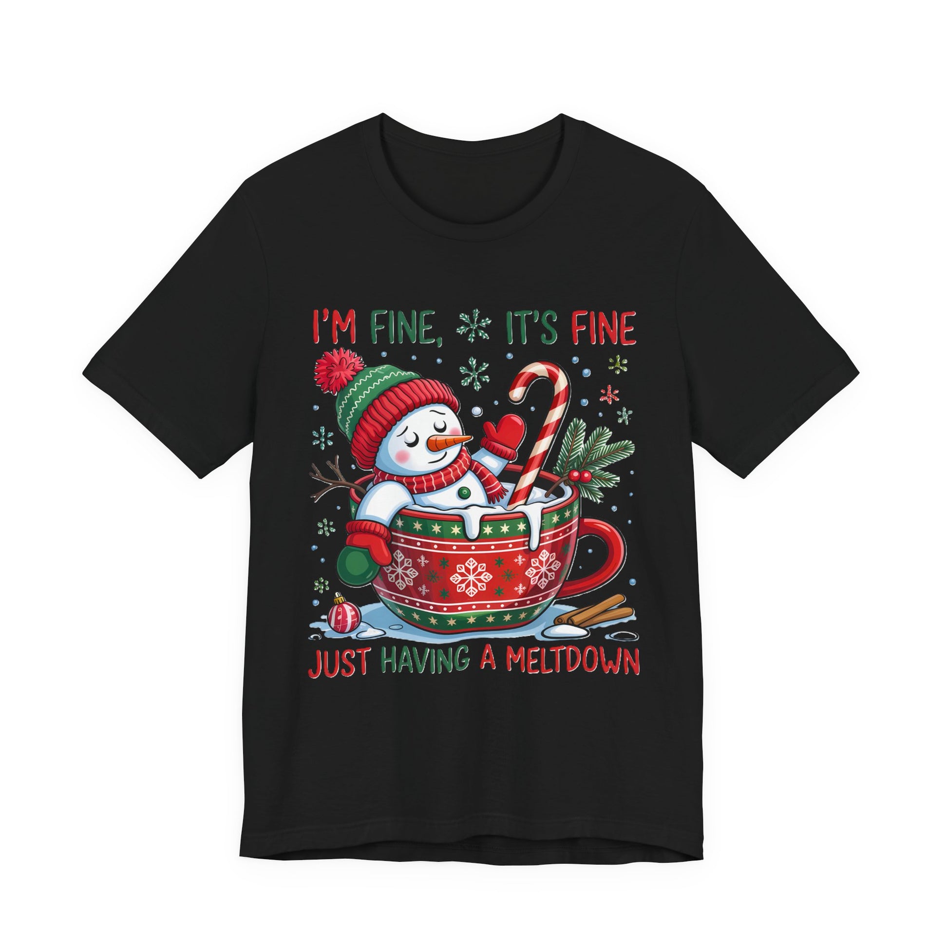Melting Snowman Christmas Tee - "I'm Fine, It's Fine Just Having a Meltdown" Holiday T-Shirt